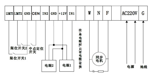(一)外部接線,連接電源、電機電源線、限位開關線,按顏色和編號對號接線。